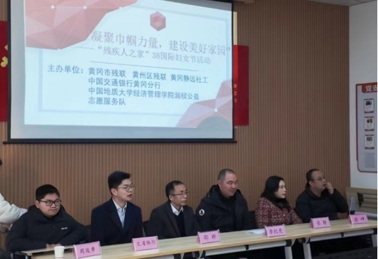 上午,学院师生到访黄冈市静远社区“残疾人之家”,与黄冈市残联、黄冈市黄州区残联、交通银行黄冈分行和静远社工中心等相关单位共同参加了“凝聚巾帼力量,建设美好家园”三八国际劳动妇女节表彰慰问活动,并座谈交流。活动中,公司党委副书记李纪亮代表地大经管学院师生向在场的女士送去节日的祝福,向受到表彰的残疾人士表示祝贺,表达了对残疾人士们的敬意。同时,他向长期关注和关心支持公司黄冈籍残疾学生周俊章的有关部门表示感谢,汇报了周俊章的在校学习生活情况,介绍了学校学院对他和他的家庭极特殊情况给予的帮扶及培养举措。