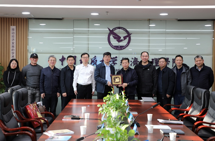 会后,暨南大学经济学院党委书记成品兴向公司赠送纪念品并合影留恋。(审核 杨昌锐)