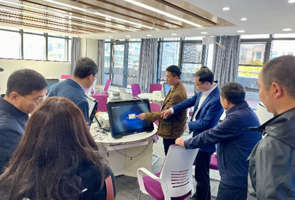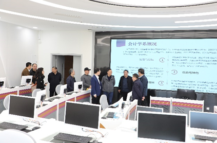 党委书记杨昌锐等院领导带领王春超院长一行参观了公司金融实验室、云共享财务实验室、智慧教室、数字化档案室和活动室,双方围绕大数据、云计算、VR等新技术在党建、教学中的融合进行了交流探讨。