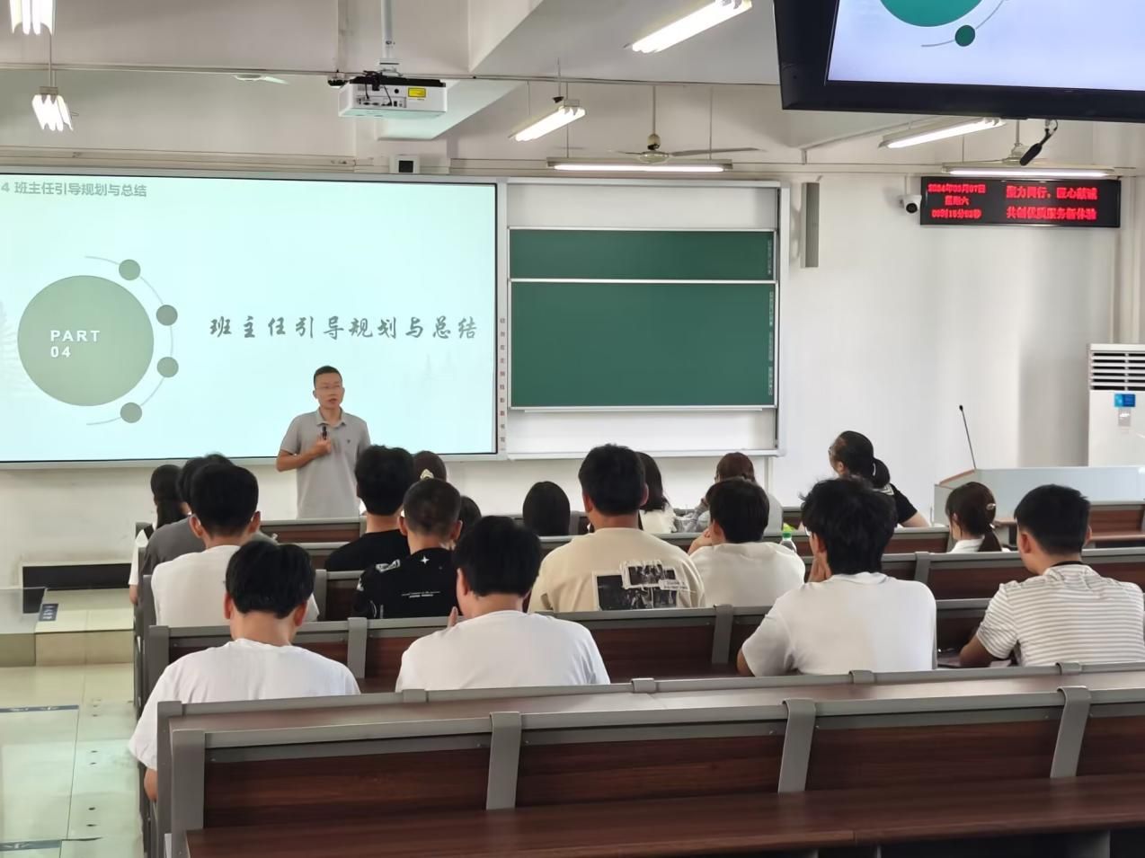 9月4日晚,2024级新生辅导员张弛老师在辅导员见面会上介绍学情院情,与新生畅谈大学学习生活的五大法则。