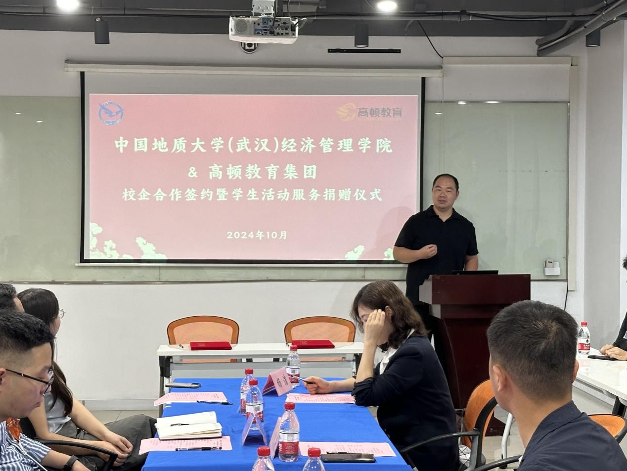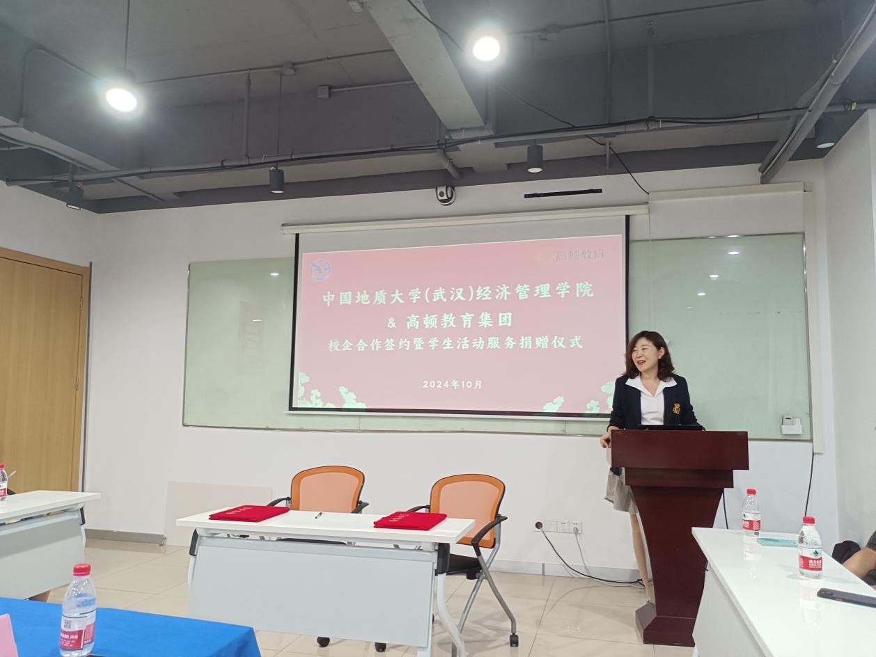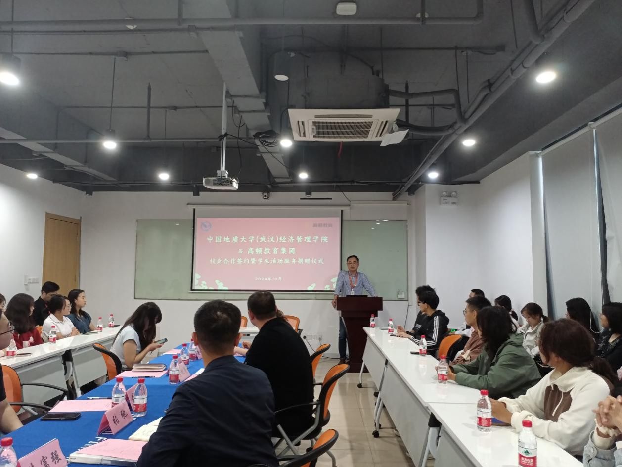 10月17日下午,学院师生一行赴高顿教育集团武汉总部,开展院企合作签约暨学生活动服务捐赠仪式。高顿教育合伙人兼高顿教育中原战区总经理吴月明、高顿教育武汉分校市场总监黄新成、ACCPA项目经理郑帅、市场主管朱富强、项目主管徐梓涵出席仪式,院党委副书记李纪亮、会计系主任杨洁、辅导员张弛以及部分本科生代表一同参加。仪式由郑帅主持。