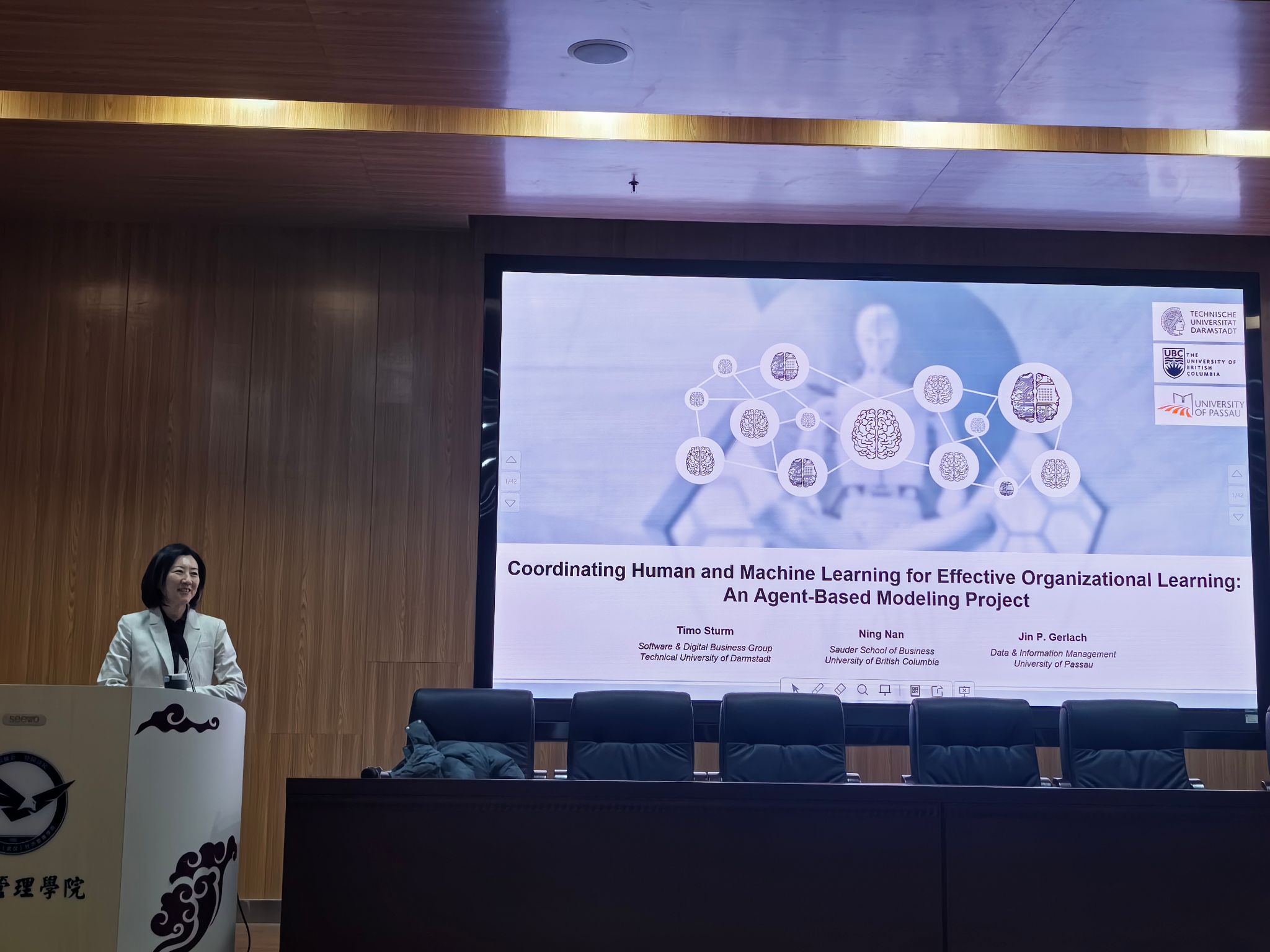(通讯员 王飞)12月12日上午,加拿大英属哥伦比亚大学商学院副教授Ning Nan老师莅临公司,在经管学院一楼报告厅为学院师生们带来了题为《Coordinating Human and Machine Learning for Effective Organizational Learning: An Agent-Based Modeling Project》的精彩主题讲座。本次活动由朱镇教授主持,吸引了众多师生前来聆听。