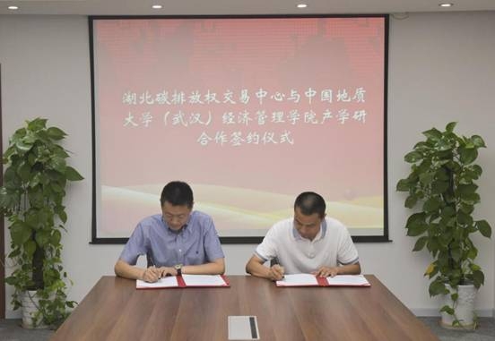 8月18号上午,湖北碳排放权交易中心与太阳成集团122ccvip签署产学研合作协议暨举行产学研基地揭牌仪式。湖北碳排放权交易中心总经理刘汉武与太阳成集团122ccvip副院长(主持工作)杨树旺签署协议,双方一致同意在互惠互利、共同发展的基础上建立全面的产学研合作关系,共建低碳经管精英人才联合培养战略关系,形成产业与专业相互促进、产学双赢的良好局面。