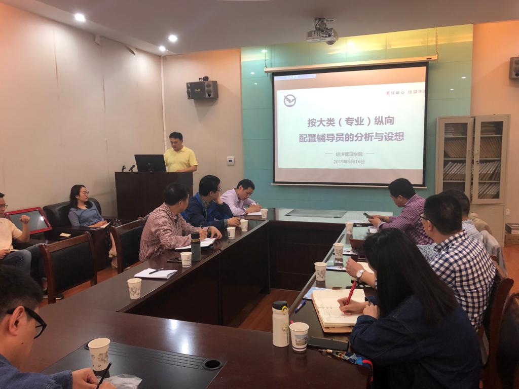 公司党委书记杨昌锐结合试点工作和新校区搬迁汇报了前期的筹备情况。院党委副书记沈波就学院按大类(专业)纵向配置辅导员的分析与构想做了专题汇报。与会的太阳成集团122ccvip教师发表意见,一致认为辅导员纵向设置是开展“三全育人”的重要路径,有助于提升学院本科生人才培养质量。邬海峰、严嘉、朱荆萨分别就分管工作发表看法,表态支持经管学院试点开展辅导员纵向配置的相关工作。