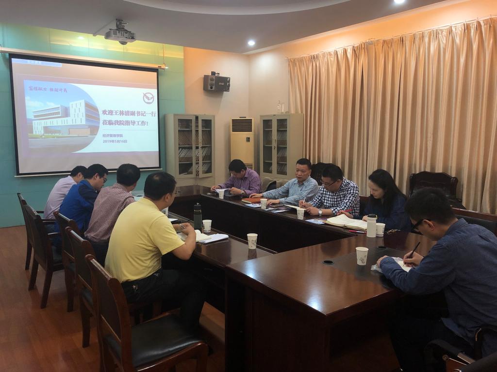 5月16日,校党委副书记王林清,学生工作处处长邬海峰,就业创业指导处处长严嘉,校团委副书记朱荆萨(主持工作)一行来公司就纵向设置辅导员试点工作开展调研。学院党委书记杨昌锐,党委副书记沈波,院长助理程胜、侯俊东,旅游管理系系主任肖拥军、经济系党支部书记齐睿及学工组全体辅导员参与座谈。