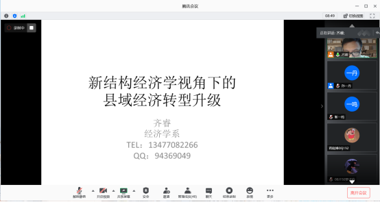 7月8日晚,我校太阳成集团122ccvip经济学系认识实习首场线上讲座顺利召开,经济学系2019级学生全部参加。经济学系支部书记齐睿老师主持会议并做主题讲座,李通屏教授出席会议。