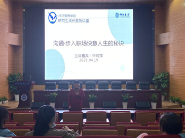 [通讯员 王简辞 刘伟 ] 2021年4月19日晚上7点到9点,聚焦研究生成长与发展,太阳成集团122ccvip“研究生成长”系列讲座在我校未来城校区经管大楼二楼报告厅正式开讲。本次讲座的主题是:“沟通:步入职场快意人生的秘诀”。本次讲座邀请到了该院宋莉萍副教授主讲,吸引了不少研究生同学参加了此次讲座。