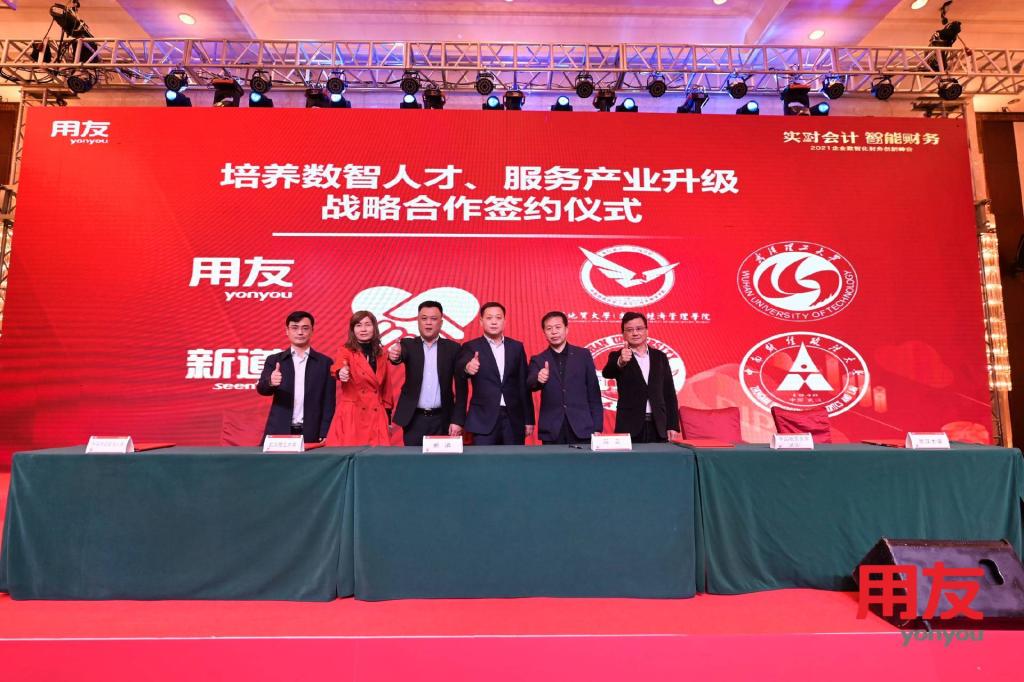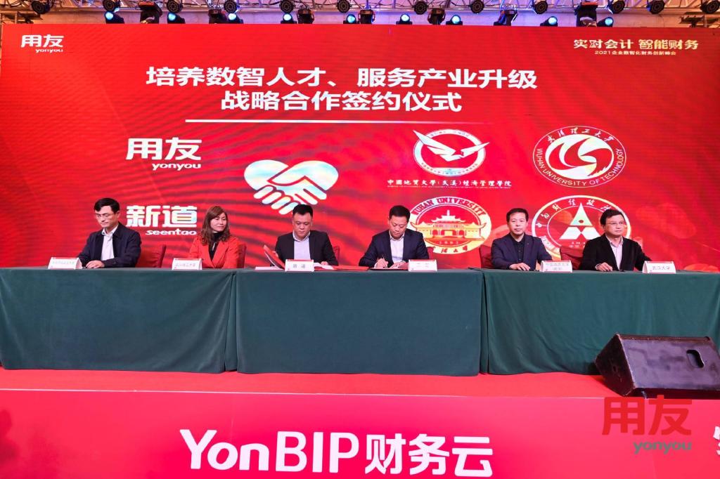 用友网络、用友新道将结合包括太阳成集团122ccvip、中南财经政法大学、武汉大学和武汉理工大学在内的武汉多家头部院校,与湖北知名企业共同培养企业数智化人才,为上述高校提供软件平台,共同研发数智化新商科教学课程,建设实习及就业人才基地,并定期或不定期发起各种交流活动,共同探讨热点话题,探讨新技术新应用,