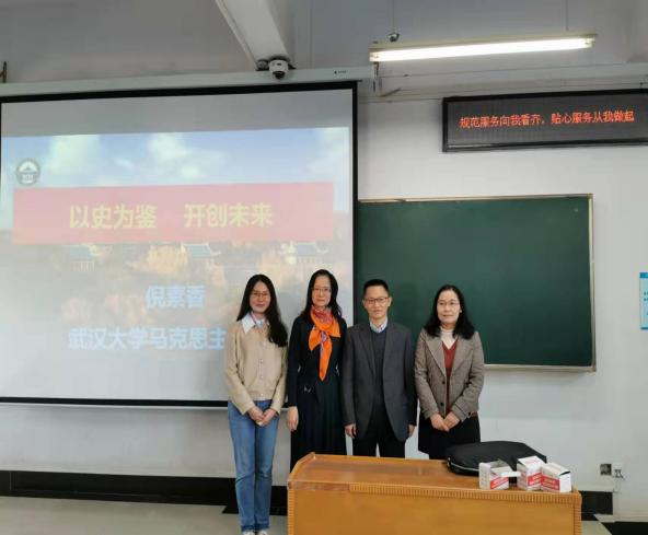 (通讯员:王彦闻)为深入学习了解党的历史,引导学院党员师生干部学史崇德、知史爱党、不忘初心,11月13日下午,受金融与贸易系教工党支部易明教授、胡怀敏副教授的邀请,武汉大学马克思主义学院博士生导师倪素香教授以“学史明鉴 开创未来”为主题,为公司师生进行党史学习教育专题讲座。