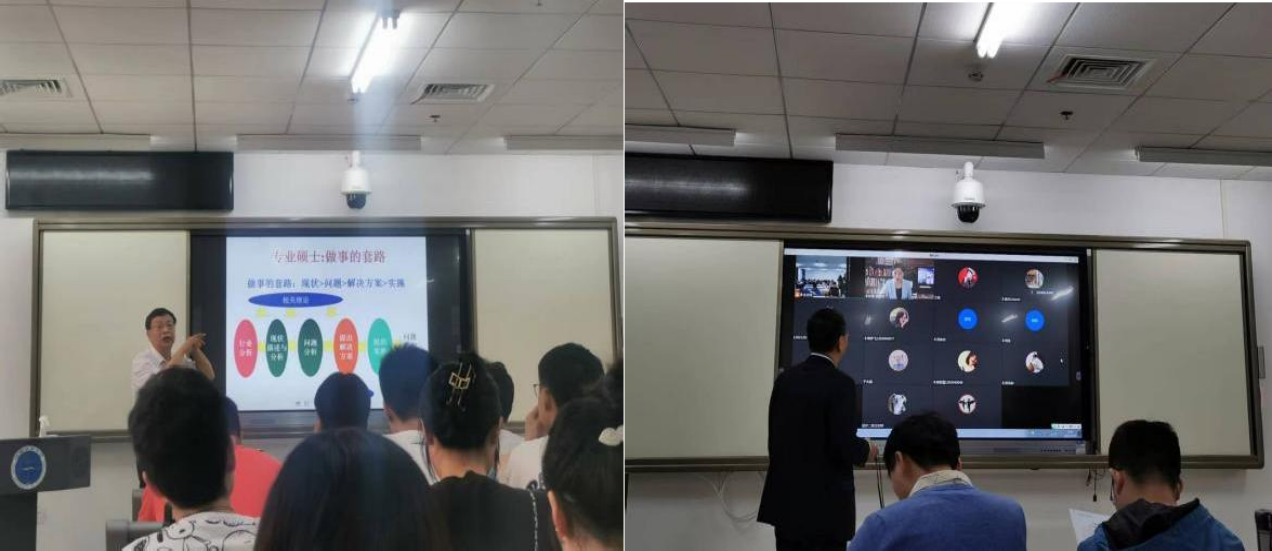 左图 4:朱老师讲授专业课 右图 5:朱老师邀请专家做讲座