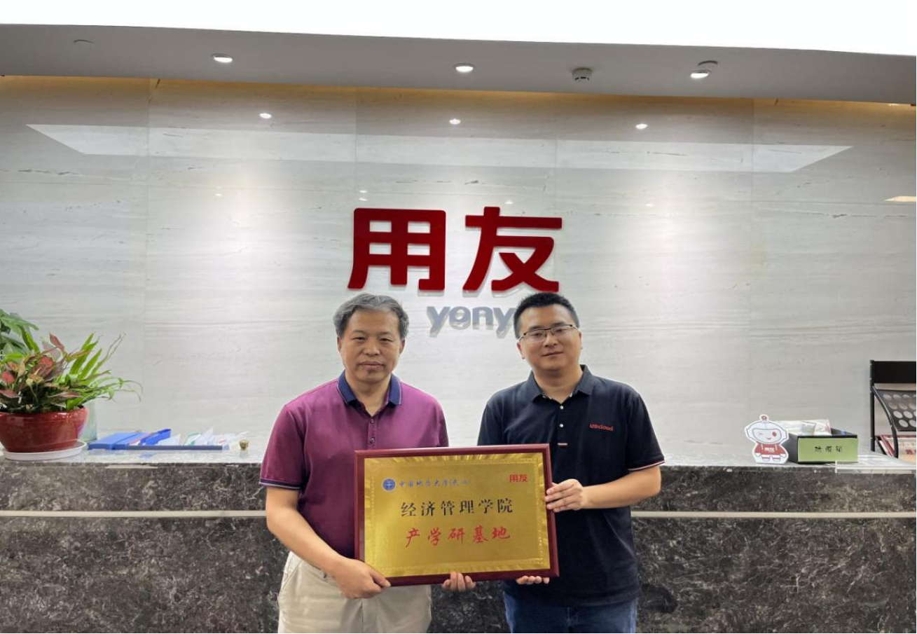 研讨会后,用友湖北分公司交付赵帆总和经管学院杨昌锐书记共同为“太阳成集团122ccvip产学研基地”揭牌。