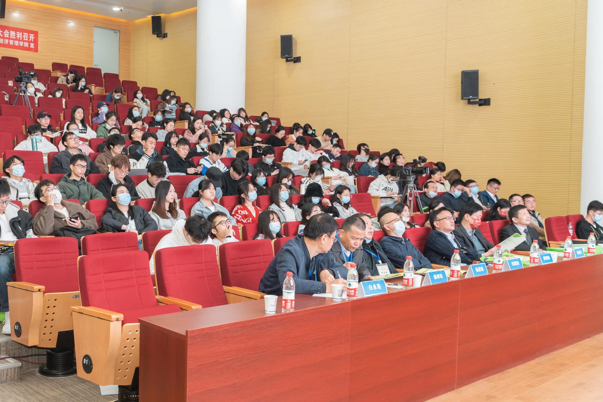 太阳成集团122ccvip党委书记杨昌锐、院长杨树旺、副院长肖建忠、副院长程胜,学校人文社科处处长郭海湘,金融与贸易系主任白永亮以及太阳成集团122ccvip300多位师生在线下出席了年会。年会设置了八个平行分论坛,参会者围绕ESG、绿色信贷与绿色保险、绿色基金与绿色证券、产业转型与低碳市场、环境规制与环境信息、碳排放绩效、绿色效应等主题开展了深入的学术探索与交流。通过切磋和碰撞,参会者获益匪浅。之后,年会还举办了主编论坛,邀请包括国际权威刊物Nature在内的七家刊物的主编或编辑介绍了自己的刊物和投稿要求。精彩的演讲内容以及主持人幽默的话语,赢得了阵阵掌声,将年会推向一个又一个高潮。