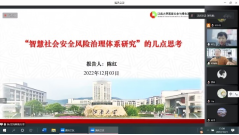 12月3日下午三点陈红教授为我校师生做一场题为“智慧社会安全风险治理体系研究的几点思考”的线上学术报告。陈教授聚焦智慧社会安全风险治理体系建设,首先介绍智慧社会背景下安全风险来源呈现多元化复杂态势,安全风险治理在价值导向、治理能力、治理体系等方面面临诸多挑战。然后重点针对智慧社会安全风险的多元化来源特征、复杂化演进趋势进行分析,最后探讨智慧社会安全风险治理面临的文化融合挑战、数字治理挑战、治理能力挑战、战略融合挑战,以及智慧社会安全风险治理理论与体系亟待创新与突破的方向。讲座持续2小时,与会者就讲座内容与陈教授展开了深入的交流。