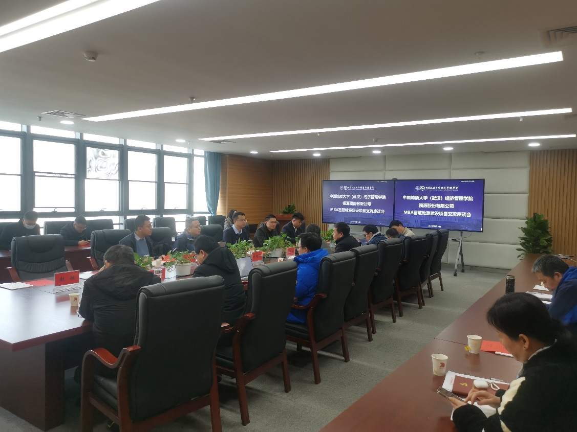 (通讯员 张弛)2023年2月14日上午,视源股份有限公司集团副总裁黄逸涛一行来院,就MBA智慧教室建设项目及学生实习就业相关工作开展交流座谈。座谈会在科教七楼422会议室举行,集团副总裁黄逸涛、集团方案架构师徐建明、战略投资并购业务总监安文冰、希沃华中大区总经理方自安、希沃湖北省数字孪生总监罗俊才、希沃湖北省高教事业部部长吴曦德等人出席会议,学院党委书记杨昌锐、院长杨树旺、党委副书记李少杰、副院长肖建忠、副院长於世为、副院长郭锐、副院长程胜、副院长王广民、工会主席王林珠、院务委员侯俊东、综合办主任陈永佳、实验中心主任赵谦、就业专项辅导员张弛一同与会。座谈会由副院长肖建忠主持。