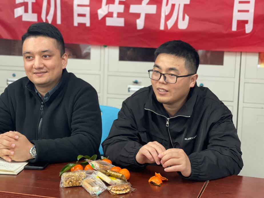学院团委书记努尔夏提·居勒提介绍了近期即将举办的“挑战杯”学术科技作品竞赛、第二届“青春舞者”校园舞蹈大赛、“经管杯”系列体育比赛等活动,希望同学们能够积极参与其中,培养兴趣爱好,以赛促学提升综合能力,通过“第二课堂”活动有效缓解学习上的紧张压力。