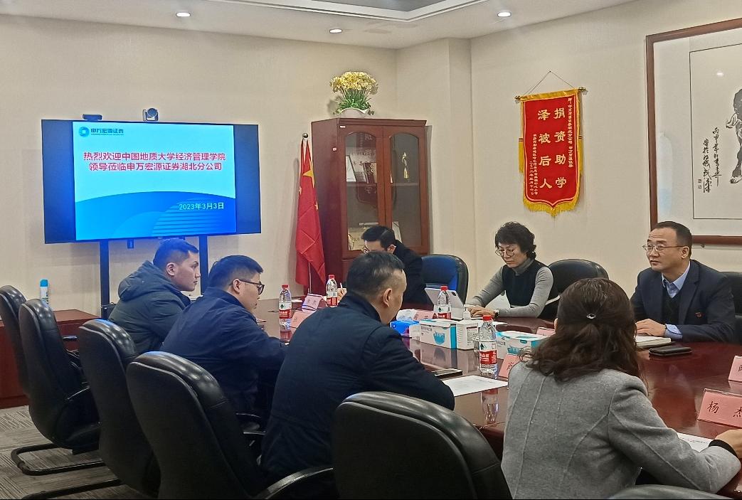 赵杰俊代表申万宏源证券湖北分公司对公司到访表示欢迎。他详细介绍了公司发展历程、组织架构、经营状况、产业领域等情况。他表示公司对经济、法律、会计人才的需求较大,希望开展学生实习实践、院企项目合作、投资孵化与研究服务等多层次的校企合作。
