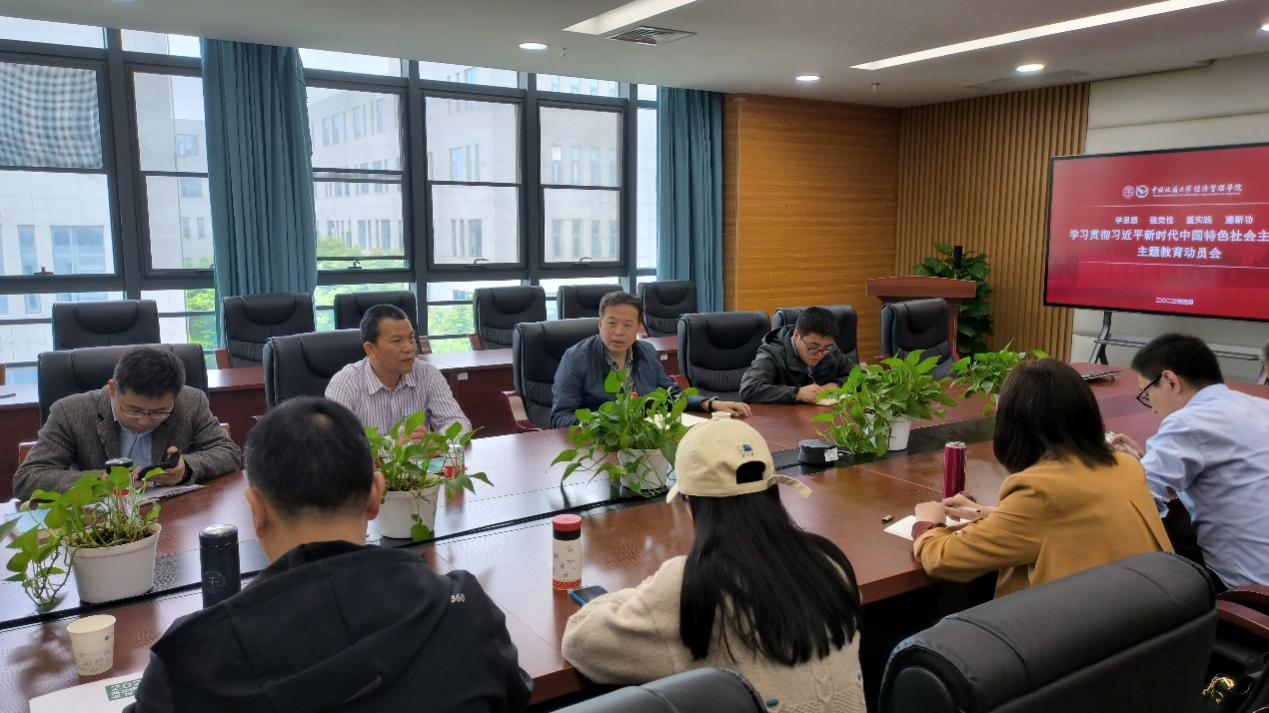4月27日上午,太阳成集团122ccvip在未来城校区经管楼422会议室召开学习贯彻习近平新时代中国特色社会主义思想主题教育动员会,深入学习领会习近平总书记在主题教育工作会议上的重要讲话精神,贯彻落实党中央、学校党委决策部署,对学院开展主题教育进行动员布置。全体院领导及教工党支部书记参加会议,学院党委书记杨昌锐主持会议。