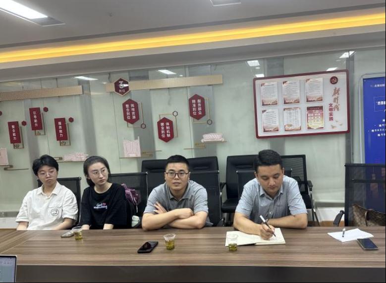 光谷壹新社工项目主管覃敏姣介绍了社区暑期托管班等项目计划,提出招募志愿者和助教等诉求,并高度肯定了公司志愿者在学雷锋月等活动中服务社区工作的积极表现,希望继续深化合作开展系列项目。努尔夏提·居勒提老师与工作人员就项目对接进行了详细交流,并介绍了公司“经鹰少年”宣讲队、启明星盲校支教团、经鹰宣讲团、志愿者工作部等发展情况,表达了推动志愿服务和社会实践进社区的期待。