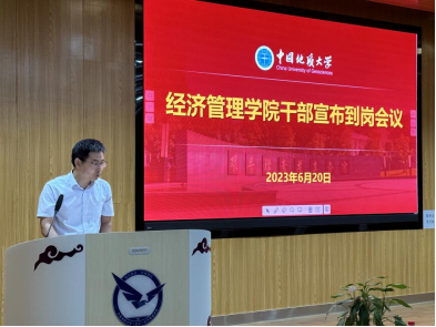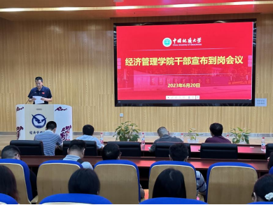 於世为同志作任职表态。他用感恩、传承、开拓三个词表达了对学校党委信任、学院同事们支持的感谢和做好院长工作的决心,他表示,在今后的工作中,将与所有同事一道,始终把习近平新时代中国特色社会主义思想作为根本遵循, 坚持党的教育方针,在学校的支持下,以立德树人为根本,学科建设为龙头,开拓学术引领新风尚;依法依规履行职责,讲实干 求实效,㾾洁自律,开拓风清气正新面貌;兼听各方意见、团结全院教职工,激发工作热情,坚持“主流发展、特色提质”,勇攀高峰,开拓学院创新发展新阶段。