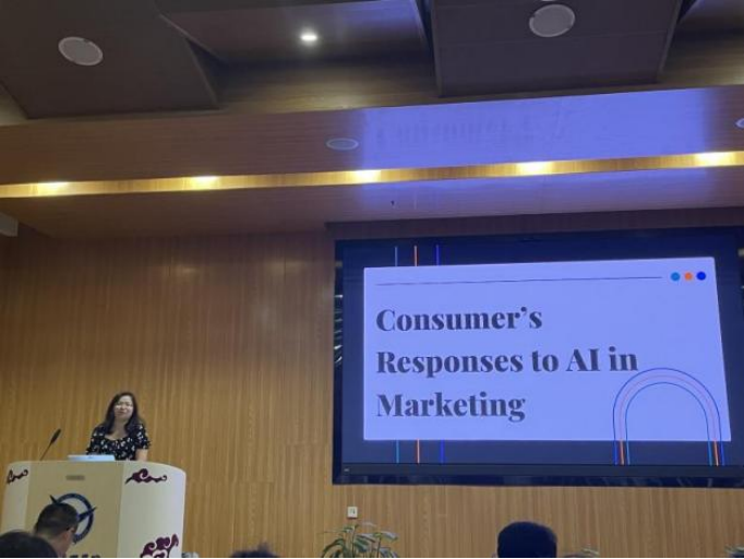 在随后的实习中,学生们参加了一系列与实习相关的讲座和参观活动。其中,美国巴特勒大学市场营销助理教授张弛博士带来了关于"Consumer’s Responses to AI in Marketing"(人工智能在市场营销中的消费者反应)的讲座,为同学们深入了解了人工智能在营销领域的影响和应用。