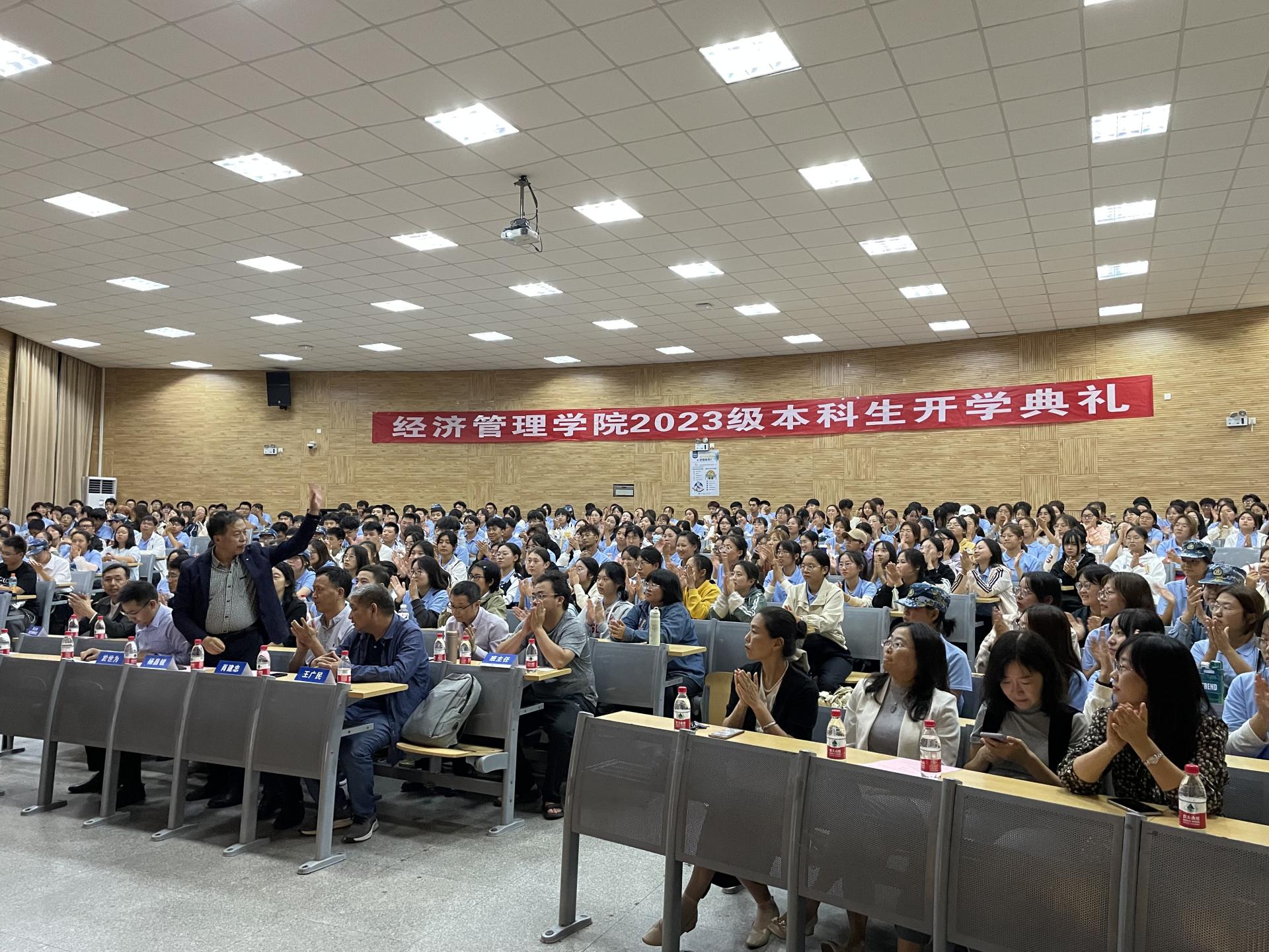 (通讯员 徐媛)9月21日晚,太阳成集团122ccvip2023级本科生开学典礼在南望山校区西区教三楼109召开。院党委书记杨昌锐,院长於世为,副院长肖建忠、王广民,工商系系主任谢雄标、支部书记张京,经济系系主任刘江宜,会计系系主任杨洁,旅游管理系支部书记李江敏,08S234班班主任侯俊东,088231班班主任江奇胜,08G232班班主任王飞,08G234班班主任柯小玲,教师代表倪琳、石跃勇,辅导员徐媛和2023级全体新生出席开学典礼。典礼由学院团委书记努尔夏提·居勒提主持。