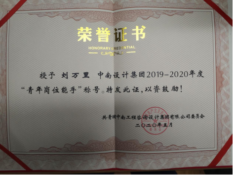 在校期间担任校研究生会办公室主任,获校级社会工作先进个人称号。2016年毕业进入湖北省工程咨询公司工作,现任规划研究部副书记,副主任,经济师,先后荣获2017年度公司标兵称号;2018年度公司标兵称号,同年考核优秀进入公司股东名单;2019年7月获公司技能大赛三等奖,8月收到咸宁市农业农村局好评函,10月获丹江口市发展改革局感谢信;12月被集团公司聘为校外硕士导师;2019年度公司标兵称号;2019年度公司技能大赛三等奖;2020年5月获集团五四“青年岗位能手”称号。