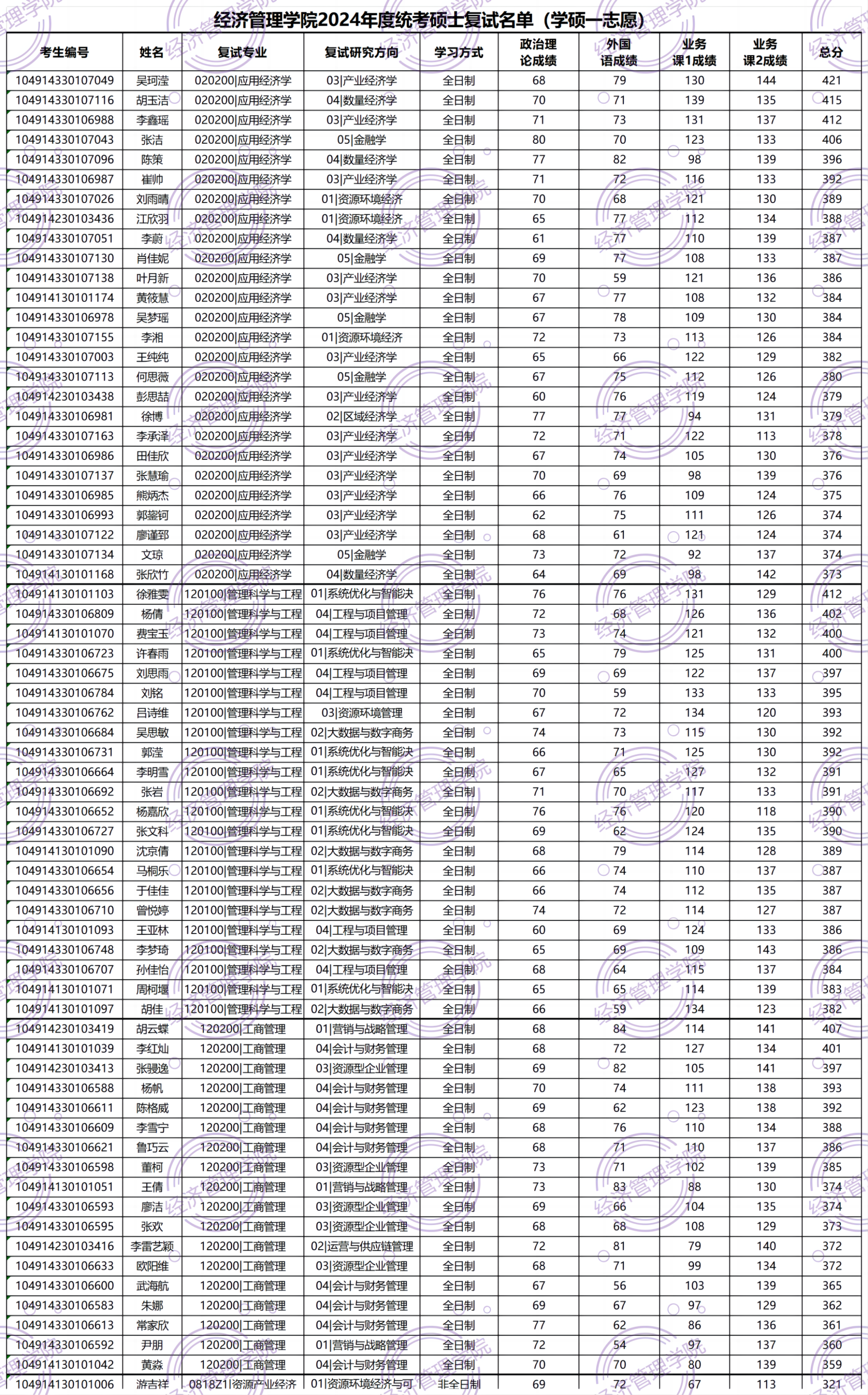 附件1:太阳成集团122ccvip2024年度统考研究生复试名单(一志愿)_统考硕士初试成绩