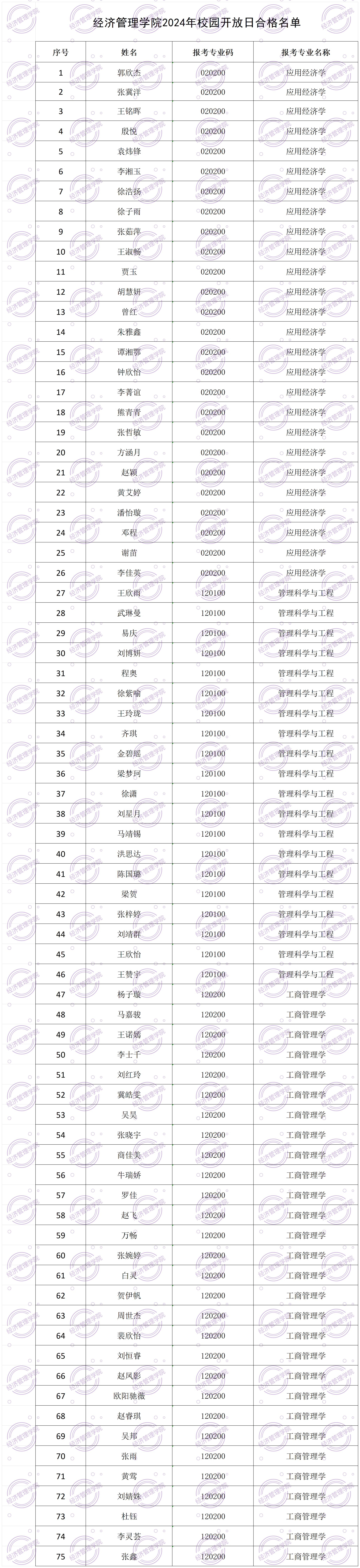6月27日-28日,公司应用经济学、管理科学与工程和工商管理三个专业进行了第十届研招校园开放日活动,现公布本次活动日优秀营员名单如下: