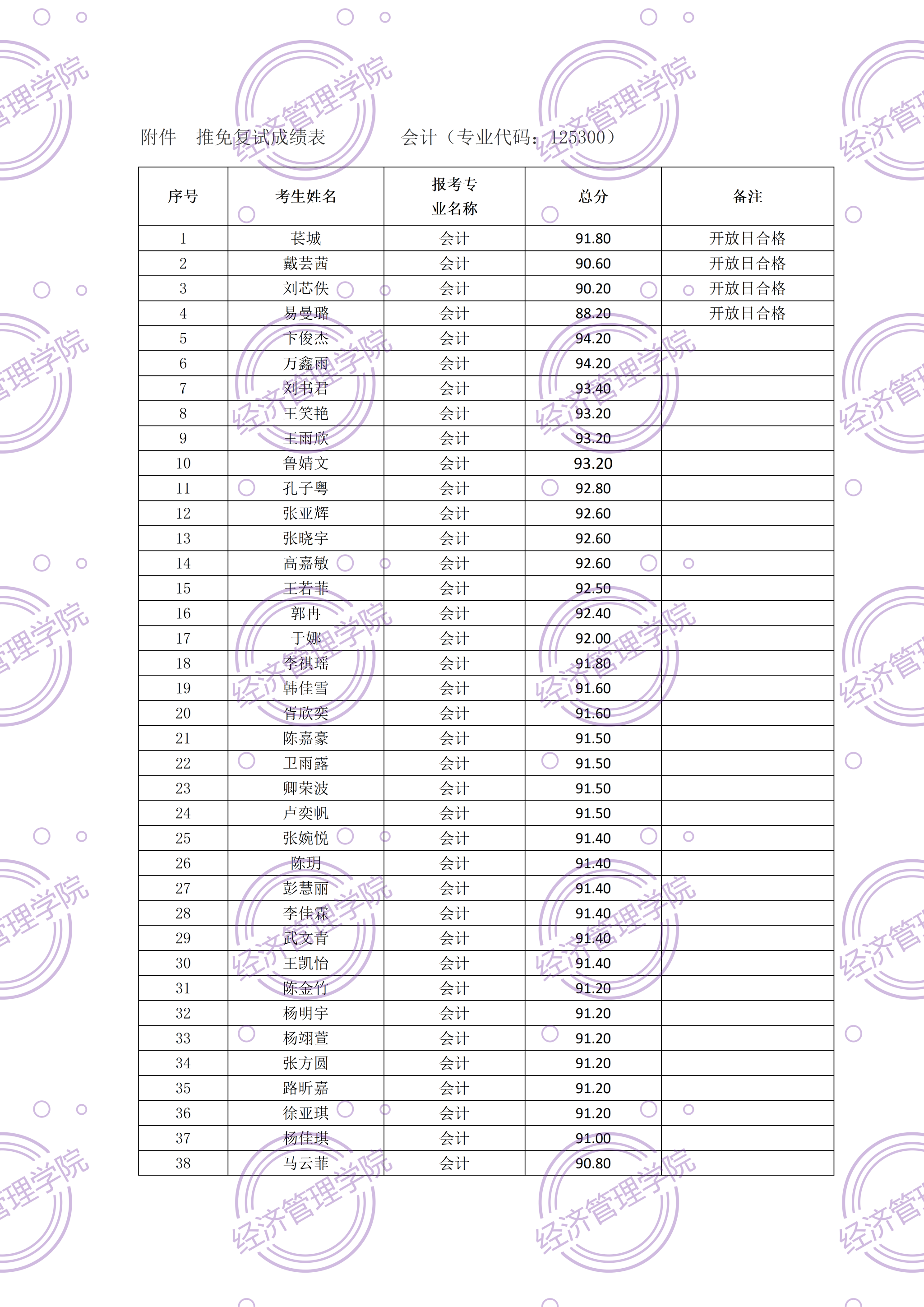 按学校相关文件规定,现对公司2025年接收会计专业硕士推免复试成绩予以公示(详见附件)。