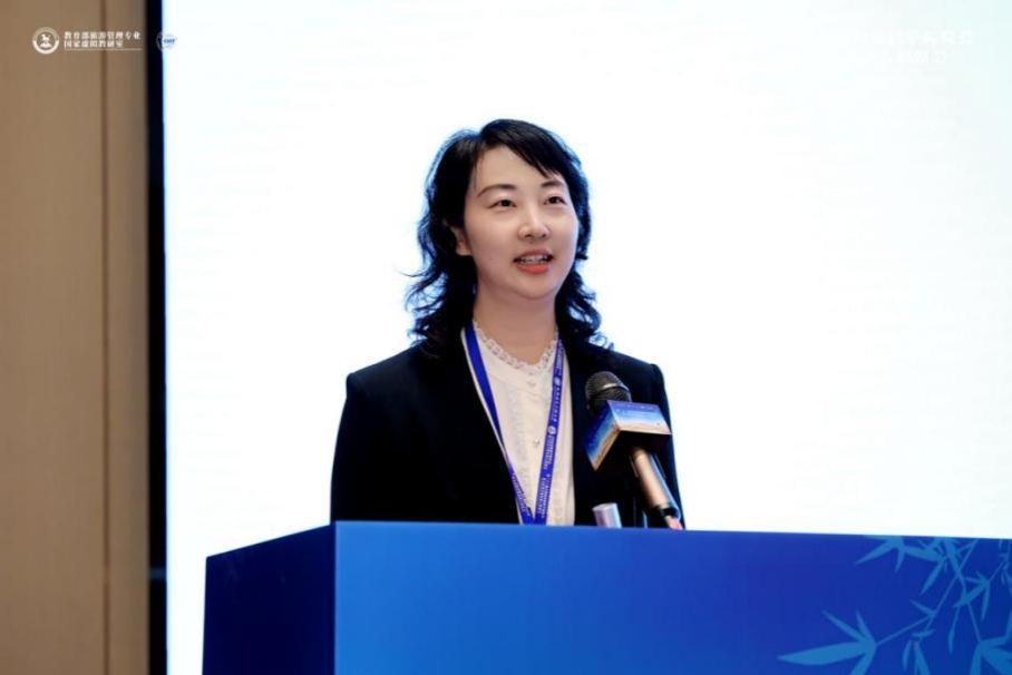 李江敏教授以文旅场景思政育人的机遇挑战为背景,围绕《知行合一 以文化人 文旅场景思政育人路径》作主题演讲,从党建引领、专业建设、平台支持、教学实践和成效互哺五个方面,分享了集团公司关于文旅场景思政育人的探索成果,提出了构建知行合一的育人形式、创新沉浸互动的数智场景、搭建多元集聚的育人平台等具体的文旅场景思政育人的建构路径。