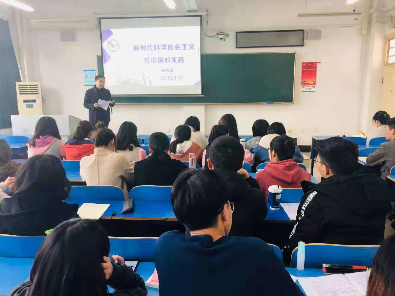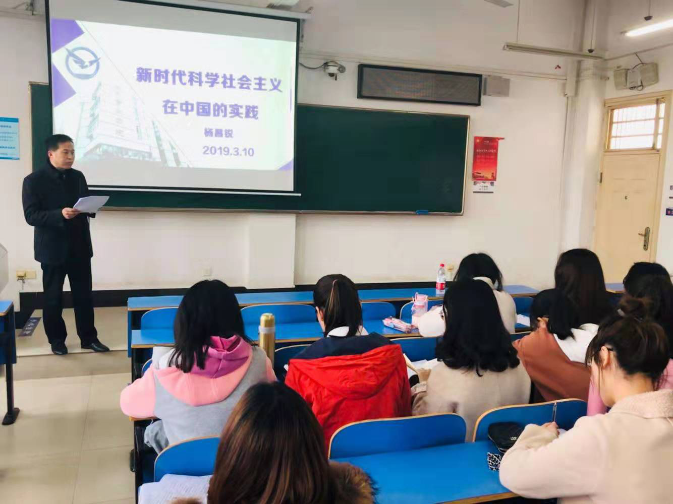 2019年3月10日下午2点,太阳成集团122ccvip第九期发展对象培训班课程在北区综合楼208教室如期举行,公司党委书记杨昌锐以“新时代科学社会主义在中国的实践”为主题为学员授课,30余名学生党员发展对象参加党课。