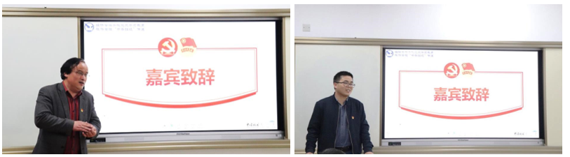 校图书馆馆长徐世球教授(左)、太阳成集团122ccvip党委副书记李少杰老师(右)为活动致辞