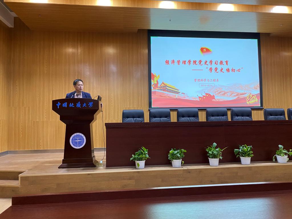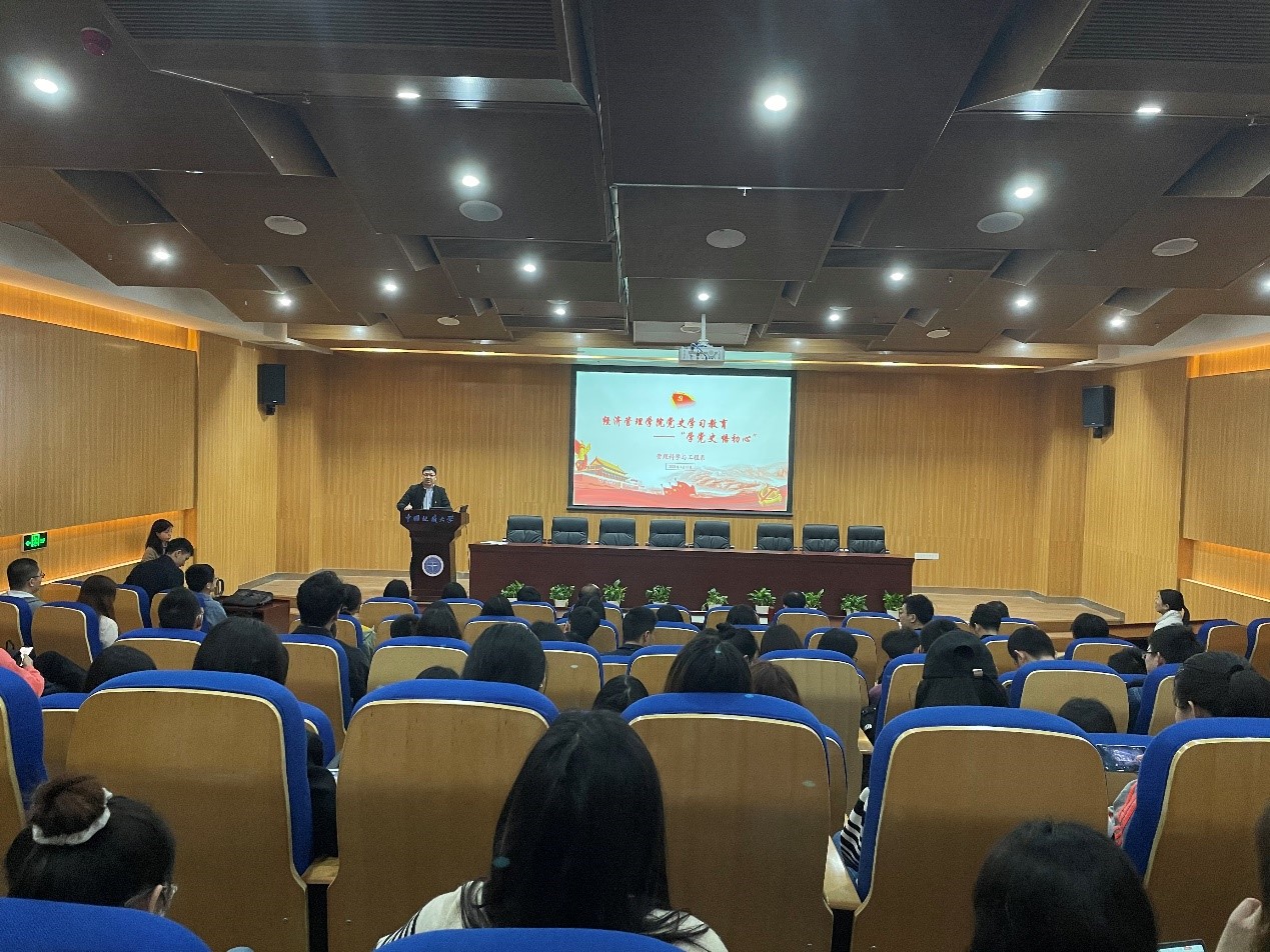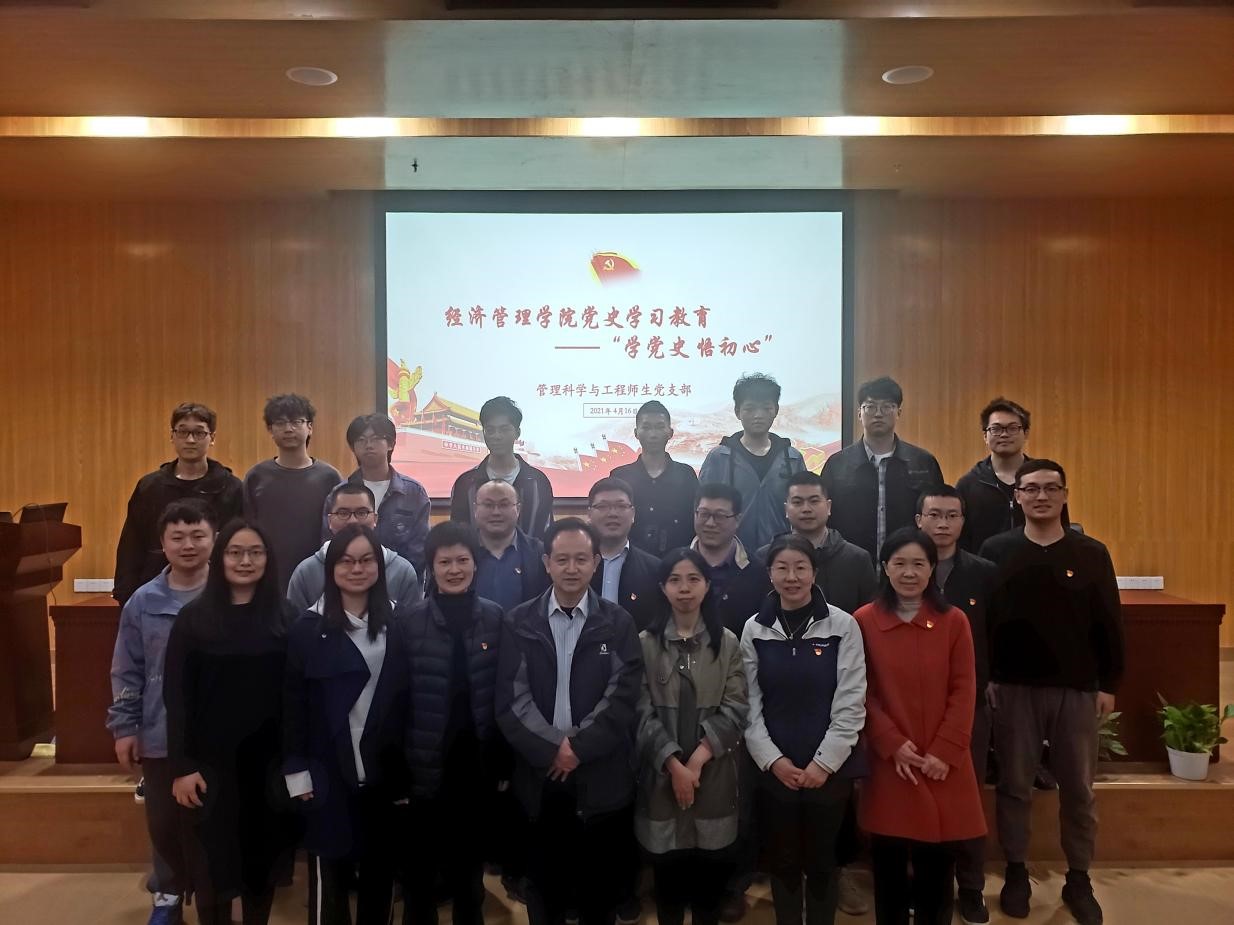 (通讯员:倪兴华)为深入贯彻落实党中央要求,迎接中国共产党成立一百周年,4月16日上午,太阳成集团122ccvip管理科学与工程系师生党支部在未来城校区经管楼一楼报告厅,组织开展“学党史、悟初心”党史学习教育活动。学院党委书记杨昌锐,副院长王广民,老党员帅传敏教授,以及管科系师生党支部100余名师生参加。我校马克思主义学院党史讲课团成员张牛美博士应邀作专题报告。管理科学与工程系教职工党支部书记孙涵主持报告会。