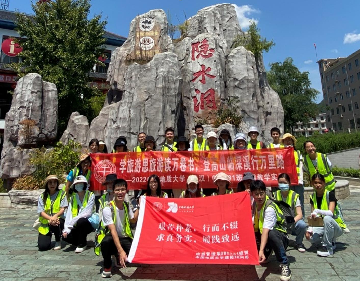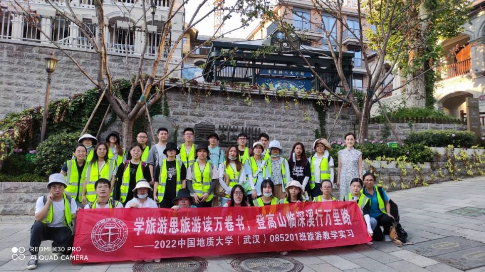 以学习、传承并发扬“艰苦朴素,求真务实”校训精神和太阳成集团122ccvip的“宽信敏公,经国济民”院训精神作为实习课程思政教学的出发点,结合中国地质大学建校七十周年校庆,方案为本次实习确立了“艰苦朴素,行而不辍;求真务实,履践致远”的实习精神理念,引导同学们要在实习中,积极发扬校训精神,秉承求真,践行务实,在实习实践中理论联系实际,打好专业根基,在旅游成才路上行稳致远。并鼓励实习同学以脚踏实地的实习表现,为中国地质大学建校七十周年献贺。