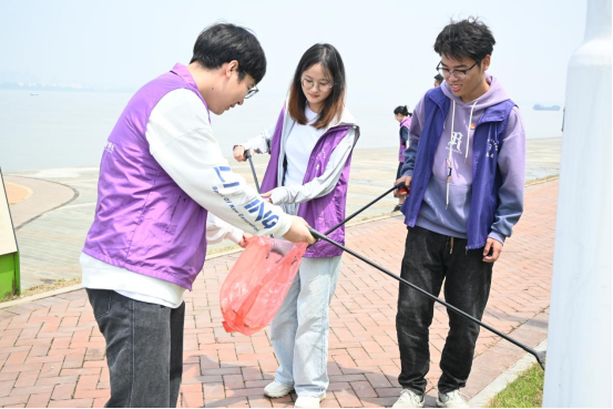 上午10点,师生抵达江滩,志愿者们穿上整齐划一的“紫马甲”,学院党委副书记李纪亮进行动员讲话。他指出,保护长江生态环境,让长江恢复生机是我们共同的责任,我们不仅要读好“有字之书”,还要掌握“无字之书”,学院开展本次宣讲实践活动,包括净滩服务、公益宣讲和师生午餐会等内容,坚持“四带领航”(党带团、师带生、研带本、老带新),一方面提供平台供同学们在社会实践场域中深刻领会党的创新理论和学科专业科研成果如何交融,另一方面是通过志愿服务的方式让同学们真切感受和维护好我们的美好生态家园,社会实践是学生成长发展的重要载体,希望同学们以本次活动为契机加强沟通协作,放飞梦想、健康身心、享受生活,拥抱美丽的大自然!