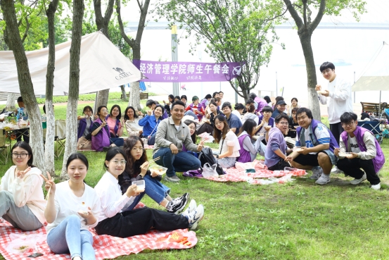 午餐时间,学院师生在江边席地而坐,共进午餐,大家围坐在一起一边品尝美食,一边畅谈理想、答疑解惑,围绕当前的学习生活、科研创新、求职就业等多个方面深入交流,氛围其乐融融。