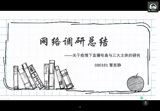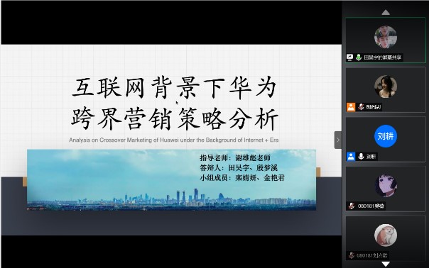 交流会的主要环节为各专业班级同学汇报实习感悟与收获。首先有外国语学院092181班田昊宇、殷梦溪同学分享“互联网背景下华为跨界营销策略分析”为主题开展的小组网络调研实践活动,紧接着是蔡琪、董方黎明小组对其疫情情况下十堰小河村绿松石电商直播营销策略的研究项目进行分享汇报。随后092171班肖丽民、张泽蔚小组对疫情之后消费者购买中药的行为影响因素调研结果进行汇报,该小组呈现出严谨的数据分析特色;来自同班级的王璐晴同学和大家分享了她在袁氏种业高科技有限公司国际贸易部实习过程中,对种子行业的基础了理解以及对中国市场进入海外市场的深度认识。继续为大家分享是来自080181班的覃思静同学,该小组的汇报主题为关于疫情之下直播电商与三大主体的研究,小组三位同学分工明确,合作顺利,收获了宝贵的调研经验;来自同班级的李明洋同学向老师和同学们介绍了他在联想(北京)有限公司人力资源部实习的经验体会,立足于与课本又跳出课本的实践经历弥足珍贵;080182班的王雪同学和冯玫婷同学分别汇报了以河北衡水市王集乡为中心及周边区域发展新型农业电商的可行性调研结果和有着温暖办公氛围的作业帮实习中对“996”的新认识。最后是市场营销专业的汇报,082181的李政嵘同学带来其小组关于盲盒市场现状的调研报告,从文献查找到市场调研层层分析,最后为盲盒行业提出四点建设性的意见;而后,082182的班长周雨婷同学总结市场营销专业的实习概况,计划清晰、有条不紊。