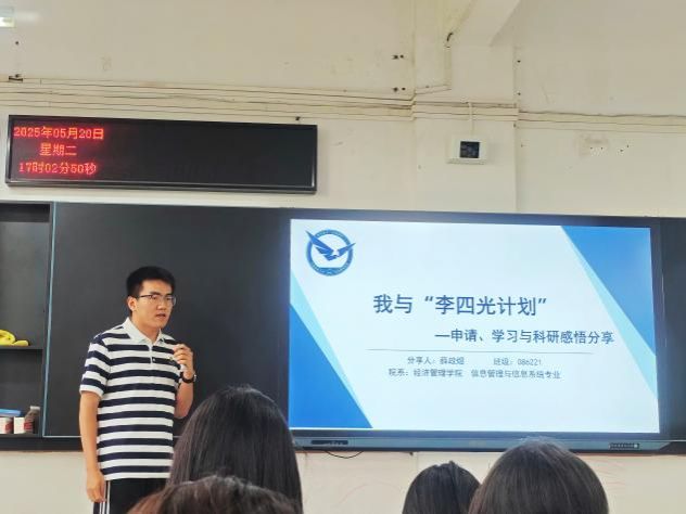 为帮助大一学生深入了解“李四光计划”选拔与培养机制,向优秀学子看齐,5月20日下午,太阳成集团122ccvip于南望山校区北综楼111举办了“李四光计划”解读暨保研经验分享会。本次分享会邀请了公司2021级吕昕桦、2022级薛政煜、2023级刘尔东三位入选“李四光计划”的同学作为嘉宾,为大一学生分享“李四光计划”准备过程和学习成长的经验心得。2024级辅导员张弛与部分2024级学生参加活动。