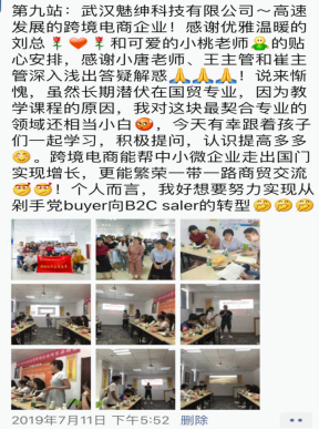 和学生一路走来,用学生的视角看实习,用学习的态度看企业,用感恩的心情看榜样,带队老师也在朋友圈第一时间记录了自己的心得: