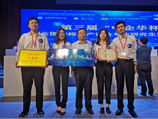 2019年6月23日晚,第三届“中企华杯”全国高校资产评估专业研究生知识竞赛在首都经济贸易大学琢玉讲堂落下帷幕。在公司朱冬元教授带领下,由资产评估专业研究生曹君茹、阴朝旭、于春雪和樊帆组成的集团公司代表队,在全国25支高校参赛队伍中脱颖而出,总成绩排名第三,斩获二等奖!朱冬元教授获得优秀指导教师奖。