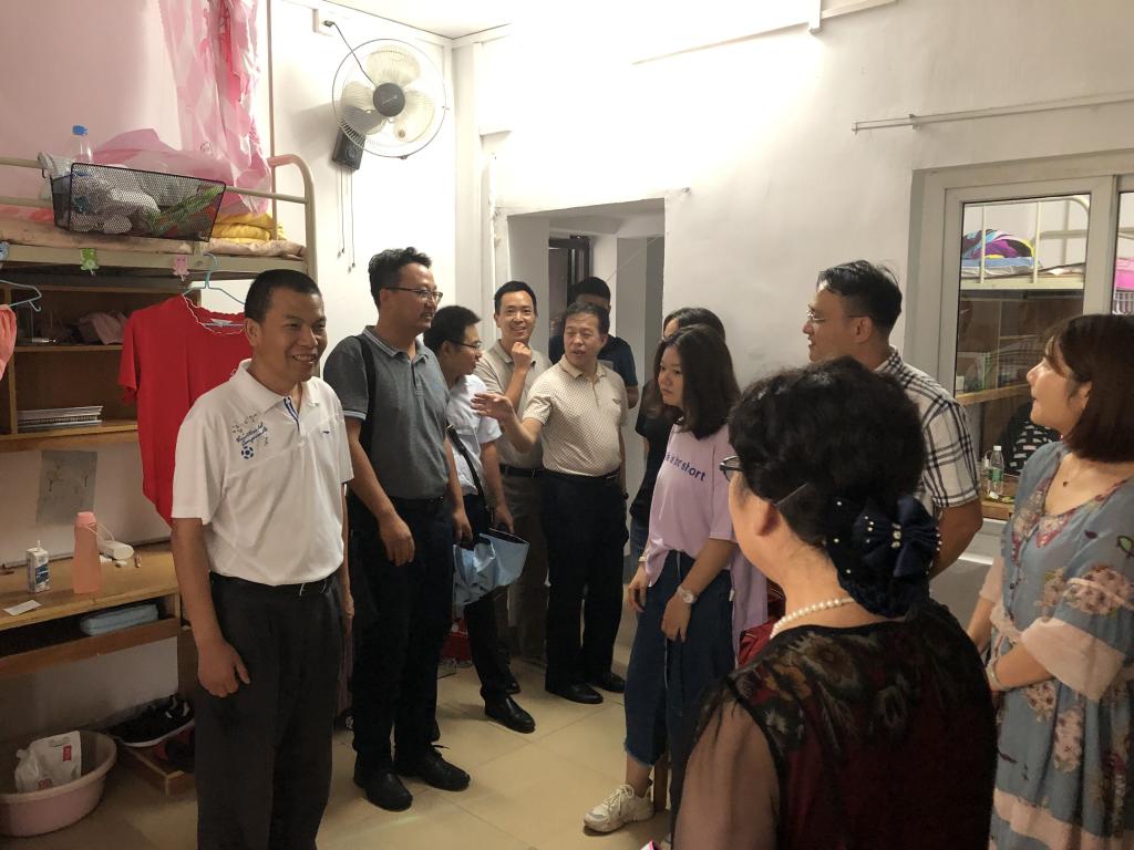 公司领导班子十分关心新生的适应情况,在辅导员的引导下深入宿舍看望新生,并在北区7栋陪同赖旭龙副校长和学校相关职能部门负责同志,共同走访了工商管理大类的两间女生宿舍。校院领导与新生及家长亲切交谈,谈及一年后将迁往的未来城校区,一位同学表示已在父母的陪同下实地考察,并对新校区生活充满期待。随后校院领导一行为新生送上真挚祝福,并合影留念。
