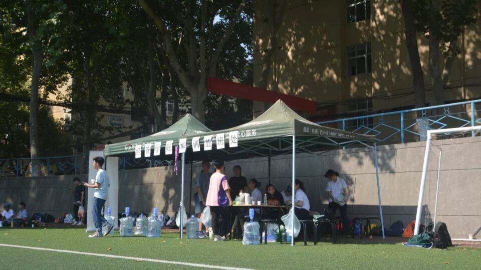 根据学校的军训实施方案,公司440名本科新生按照大类专业分别编为二营4-5连的8-11排,在8名承训教官的指导训练下认真训练。军训场地附近设有军训服务点,由学生会的高年级同学提供饮用水、常用解暑药品等必要保障,同时作为军训期间的日常请假管理点。