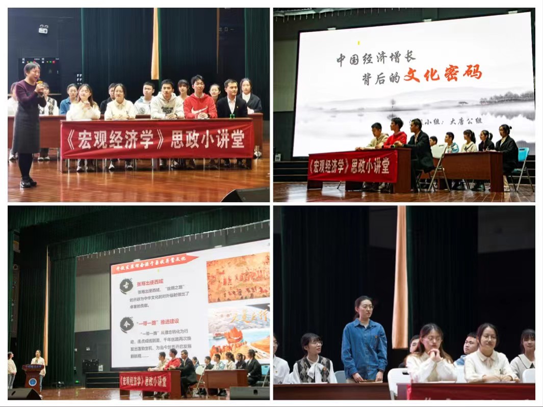 金融与贸易系李金滟老师分享了自己将党史学习教育融入课程思政的经验,她将自己长期建设的“《宏观经济学》思政小讲堂”搬到台上,以学生为主体的互动式教学模式颇具成效。她分享道,通过把党史学习教育与专业课学习深度融合,深入研究新时代背景下的中国经济景观,分析党和国家重大经济政策,更有利于我们走出西方经济学范式,构建中国经济学话语体系;更有利于回顾党的百年奋斗历程;更有利于深化课程思政教学模式,在专业教育中把师生的理想信念与价值追求深植于历史,延展于未来,树立专业报国的远大抱负。